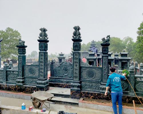 Cận cảnh khu lăng mộ đá xanh rêu được Đá mỹ nghệ Hoàng Đông thi công cho một khách hàng tại Thanh Hoá:
