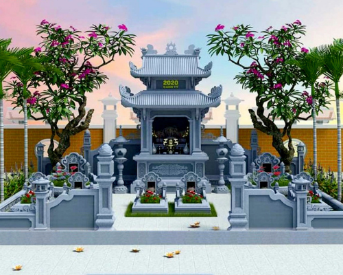 Lan can đá: Lan can đá cũng là hạng mục có vai trò quan trọng không thể thiếu. Cùng với cổng đá, lan can đá có vai trò bảo vệ diện tích của khu nghĩa trang gia đình, tránh sự xâm phạm từ bên ngoài bảo vệ sự yên bình cho nơi yên nghỉ của người đã khuất.