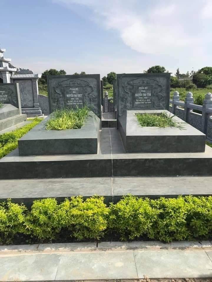 - Đá xanh rêu: Độ bóng và màu xanh rêu đậm tạo nên vẻ đẹp nổi bật và cao cấp cho khu lăng mộ.