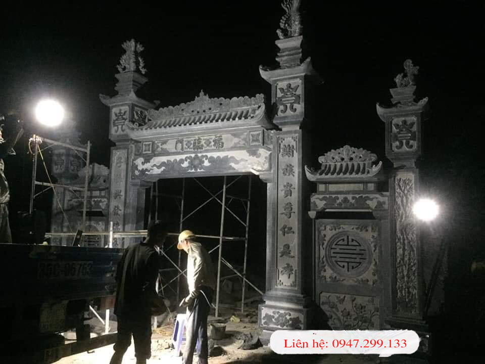 Mẫu cổng đá cho nhà thờ họ của bác Ngọc ở Hà Nội (Đá mỹ nghệ Hoàng Đông phải làm xuyên đêm để đảm bảo tiến độ theo yêu cầu của khách hàng)