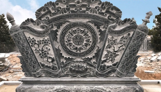 - Kích thước: Cuốn thư bình phong đá thường có 2 kích thước phổ biến là 133cm và 167cm, tương ứng với kích thước của cổng chính vào các công trình tâm linh là 107cm và 147cm.