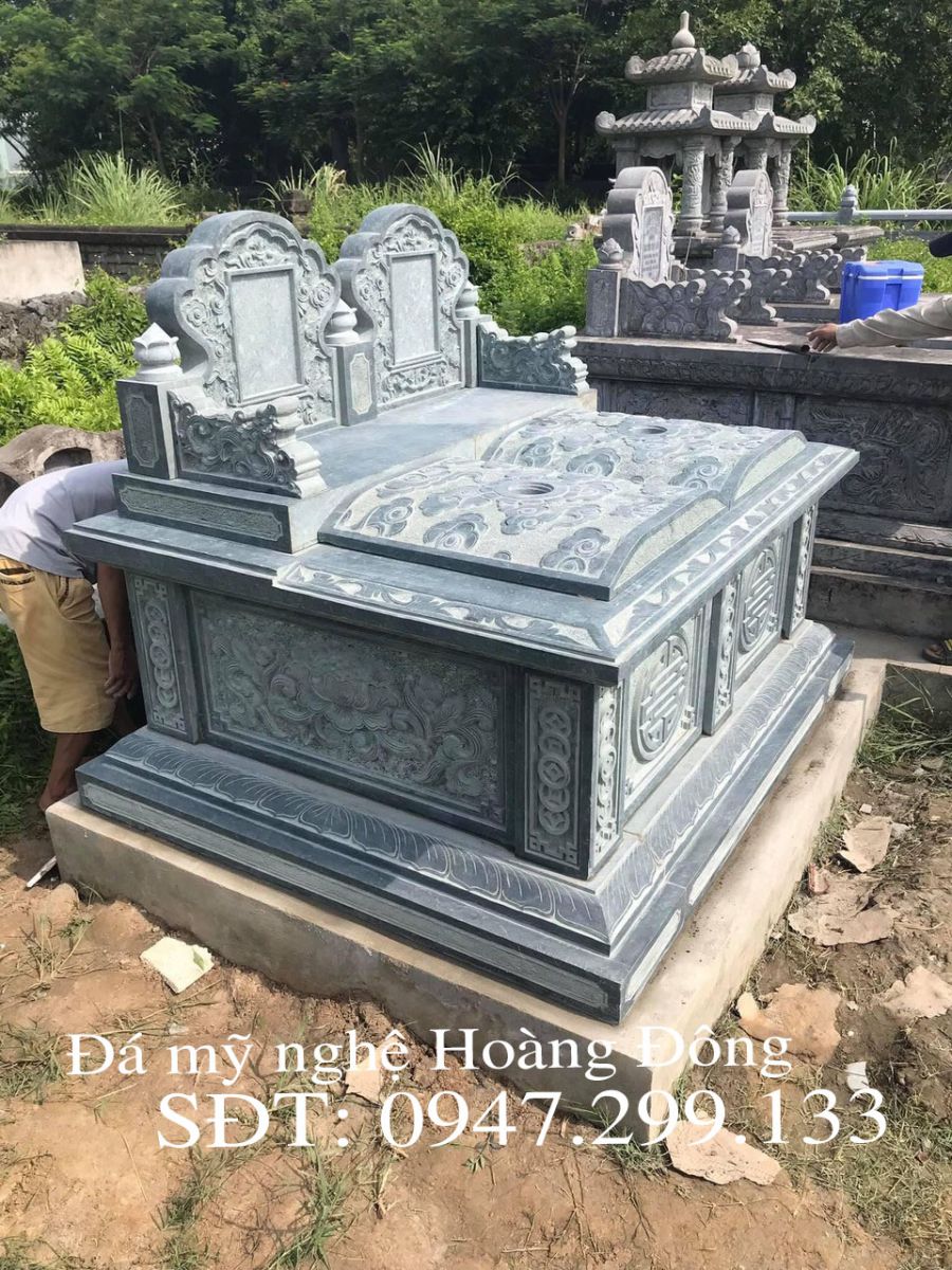 Mẫu mộ đôi đá xanh chạm khắc hoa văn đẹp